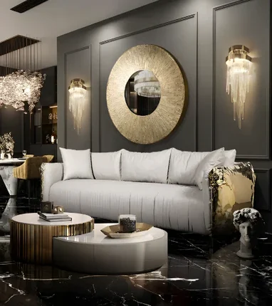 For a modern luxe look, opt for metallic finishes like gold or champagne. Keep surrounding decor minimal to let the mirror stand out. The combination of bold design and refined styling creates a balanced aesthetic that feels luxurious without being overwhelming or overly decorative.