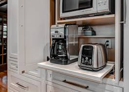 Sliding drawers offer an innovative way to store your coffee essentials without cluttering countertops. Use the drawers to store coffee beans, filters, or mugs. The sliding mechanism makes it easy to access your items without having to open bulky cabinets. This space-efficient design provides both convenience and organization, making it ideal for modern kitchens.