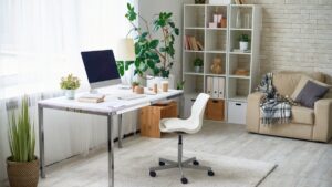 Light and neutral colors such as whites, grays, and soft blues can make a small home office feel larger and more open. These hues help reflect natural light, making the space feel airy and less cramped. Consider painting the walls in a soft shade and using light-colored furniture and accessories to enhance the feeling of spaciousness in your office.