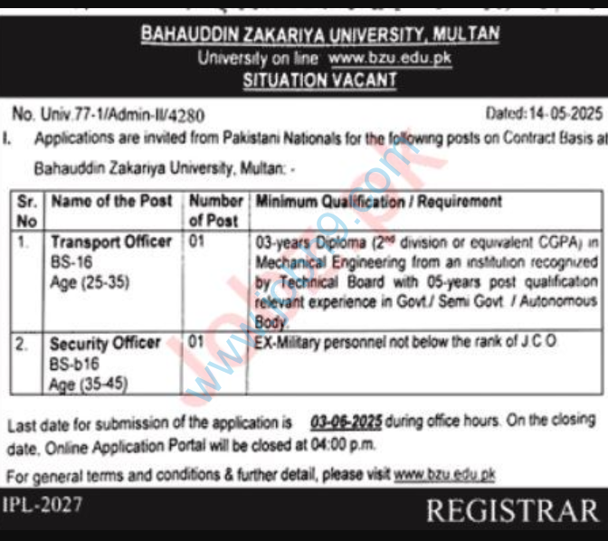 All positions are based at BZU’s main campus in Multan. If you are looking for jobs near me and live in Multan or nearby, this is a great chance for you.
