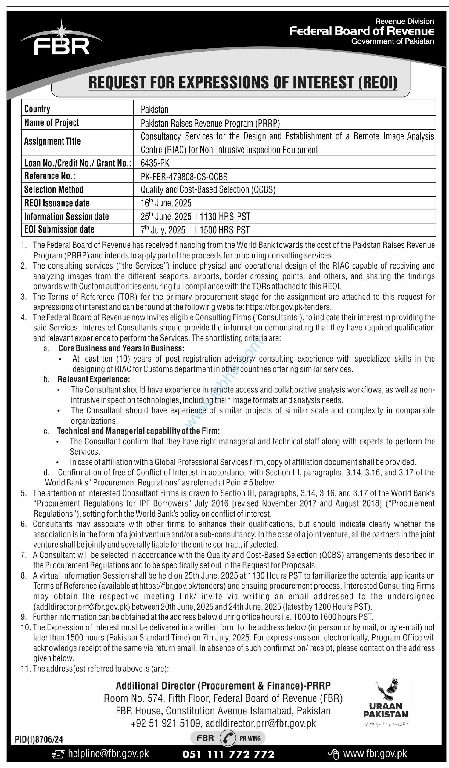 Visit the official FBR website or the local newspaper to see the full job ad.
