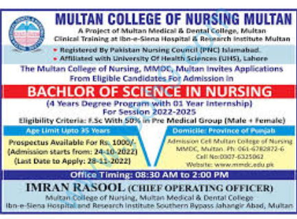 Apply now for the Nursing College in Multan Job 2025 and start your journey toward a secure and meaningful government job!
