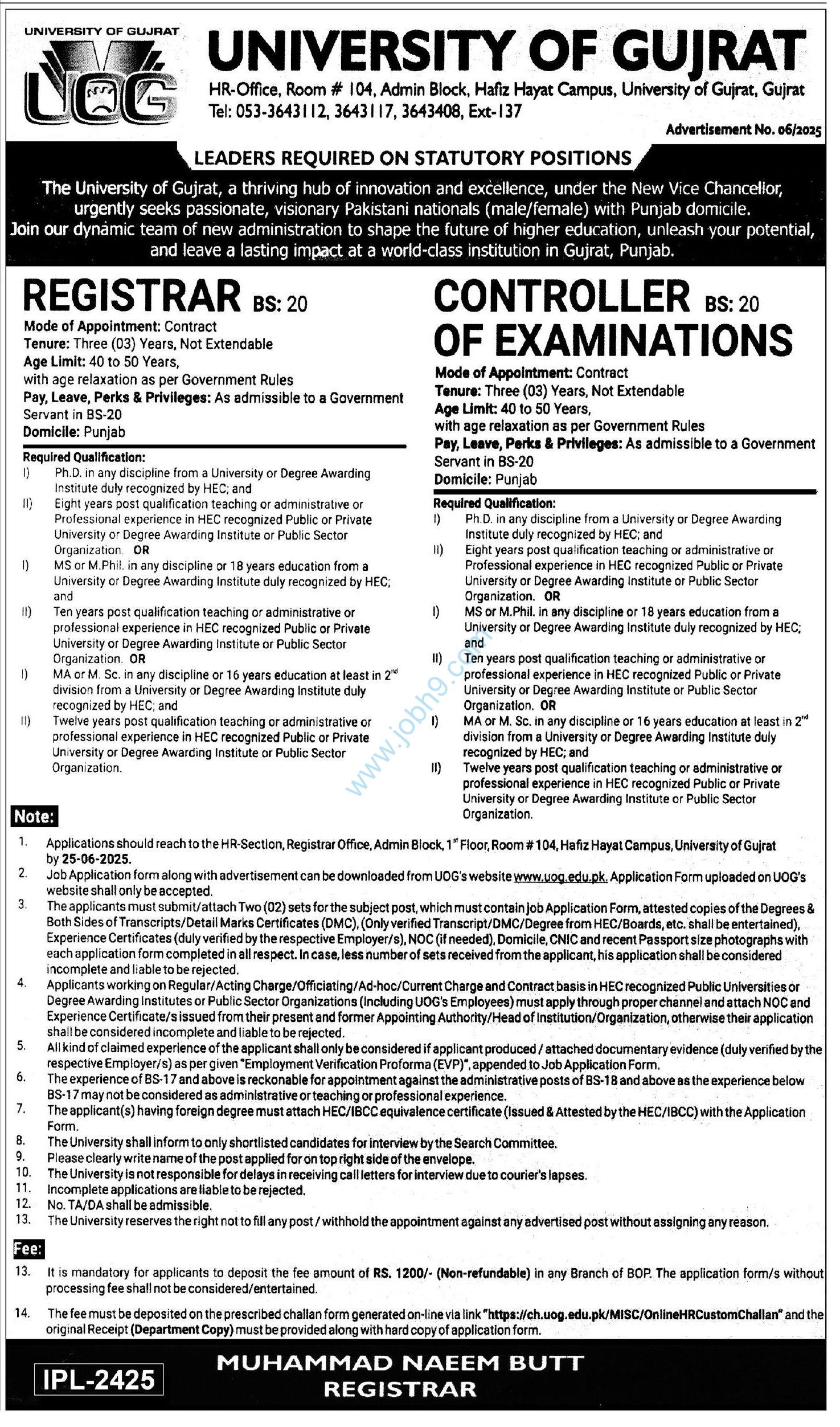 The University of Gujrat is now hiring for multiple posts. These are new jobs 2025 for teaching and non-teaching staff.